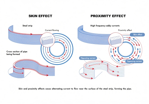 Когда мы говорим о производстве стальных труб в Centerway Steel, мы ориентируемся на эффективность и качество. Этот специфический процесс сварки является сердцем нашего ВПВ (Сварка электрическим сопротивлением) Производство труб. Он работает иначе, чем сварка, которую вы можете сделать в гараже. Во-первых, мы не используем внешний электрод для плавления металла. Вместо этого мы используем медную индукционную катушку. Эта катушка оборачивается вокруг сформированной стальной трубы, но не касается ее. Мы посылаем высокочастотный ток (обычно от 100 кГц до 500 кГц) через эту катушку. Это создает магнитное поле. Это поле заставляет электричество течь по поверхности стальной полосы. Это и есть «эффект кожи». Электричество хочет идти по пути наименьшей устойчивости. Он проходит вдоль V-образных краев, где полоса собирается вместе. Это и есть «эффект близости». Поскольку энергия так сфокусирована, края мгновенно нагреваются. Они достигают пластического состояния. Затем сожмите рулоны, сдвиньте края вместе. Они превращаются в единый кусок металла. Никаких дополнительных наполнителей не добавляется. Это делает химический состав сварного шва почти таким же, как и сама стальная труба. Вот разбивка ключевых технических различий: