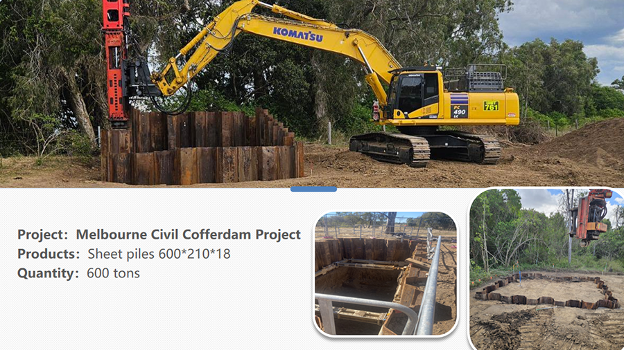 Стальные шпунтовые сваи представляют собой секции листовых материалов с блокирующими краями, которые вбиваются в землю для обеспечения удержания земли и поддержки земляных работ. Листовые сваи обычно используются для подпорных стен, мелиорации земель, подземных сооружений, таких как автостоянки и подвалы, в морских местах для защиты берега реки, дамбы, коффердамы и так далее.